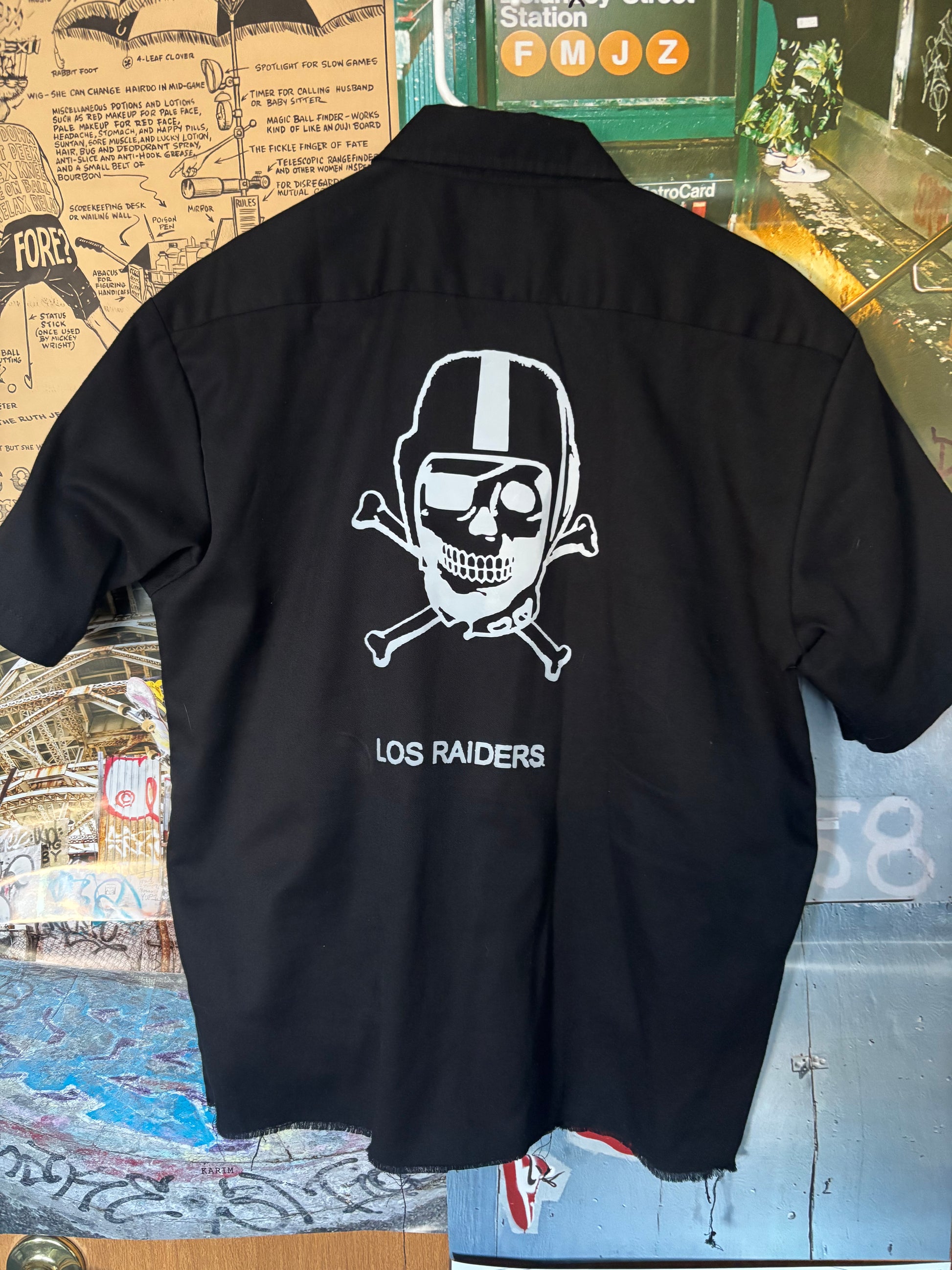 The Plaster’d Upcycled Cropped Button Down from Dickies combines functionality with style. Constructed from durable materials, this shirt features a reflective vinyl Plaster’d logo for visibility in low light and a prominent los raiders logo on the back, enhancing both aesthetic appeal and brand identity.