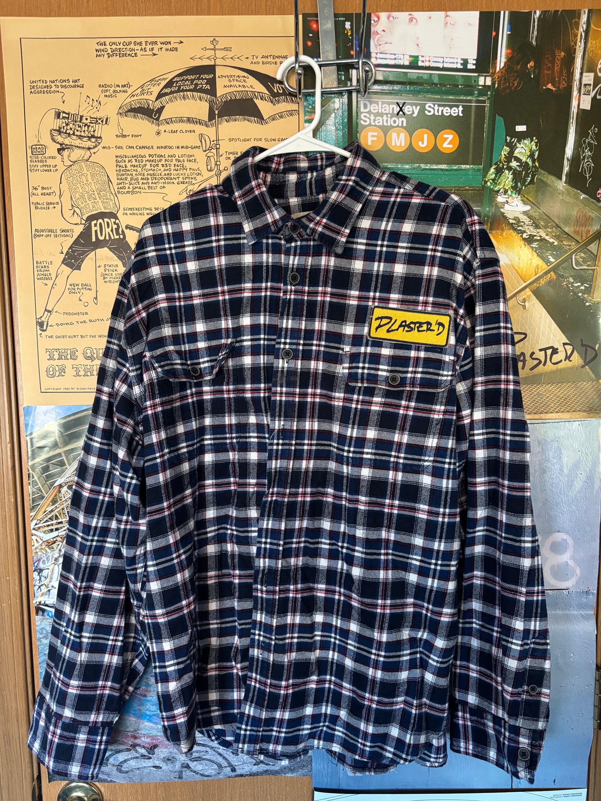 The Plaster’d Upcycled Flannel by JACHS is crafted from repurposed materials, reducing textile waste by an estimated 80%. It features an embroidered Plaster’d logo and a distinctive box logo patch, combining sustainability with style. This shirt exemplifies eco-conscious fashion without compromising on quality or design.
